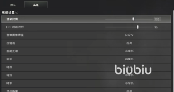 而高级这里渲染比例建议调整到一百,因为一百以上显卡的占用率会更高一点,如果角色进入到烟雾里面大概有五六十帧,会比较影响操作。另外抗锯齿、材质和可祝距离需要调整到超高,这样方便我们打排位的时候更好的看到车。
