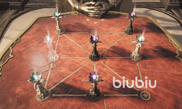 在棋盘上获取胜利后游戏界面就会显示任务完成,这个时候我们就可以越过雕像,走到后面的紫色台子上,靠近烛台按下E键就可以拿到皇家猎弓了。为了能够非常顺畅地移动棋子,推荐使用biubiu加速器,它让我们联机组队的时候,在低延迟网络环境下保持畅通的网速,并且新用户在注册账号后还能免费体验三天的会员加速通道哦。