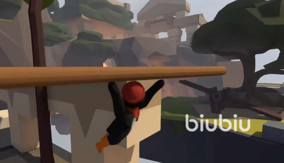 然后再回去,利用刚刚的木板继续搭一个桥,让两个木板成为平行的桥,这样巨球掉下去的时候就会改变轨道了,变成往前滚。再球落下来的时候,抓好机会跳上去,上去之后也不能一动不动,而是要使用跳跃来跟上它的节奏,保证操作的主角不会掉下来。