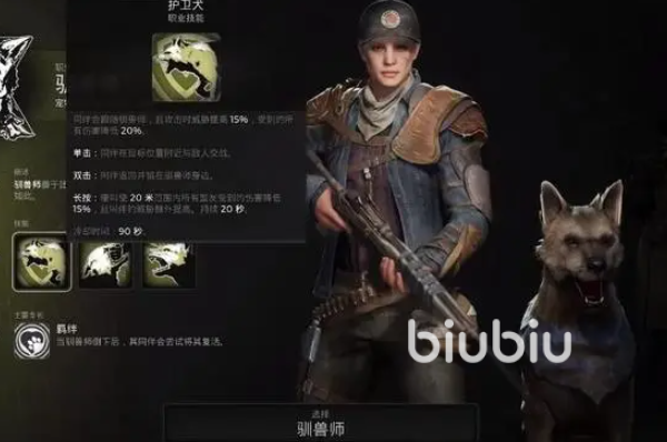驯兽师是综合能力最强之一,是很多玩家都最喜欢的一个职业。这个角色本身会多出一只宠物犬,狗狗根据驯兽师的等级可以有三种形态。另外这个角色是专门使用远程武器才能达到最大伤害,这样的话就使这个角色成为了最不容易阵亡的职业。而当我们倒地不起的时候,狗狗还能救我们一命。