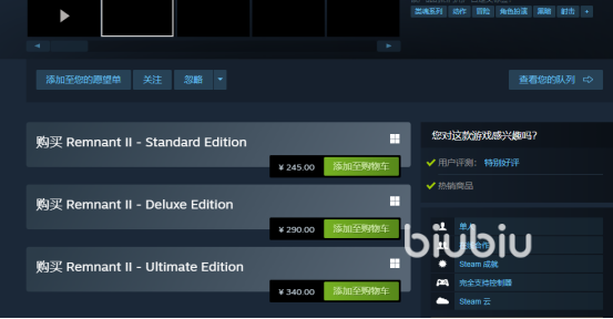 根据游戏方放出的消息,我们了解到游戏总共有3个版本,它们是标准版,豪华版和终极版。每个版本的价格也不一样,标准售价为245元,豪华版则是290元,终极版为340元。