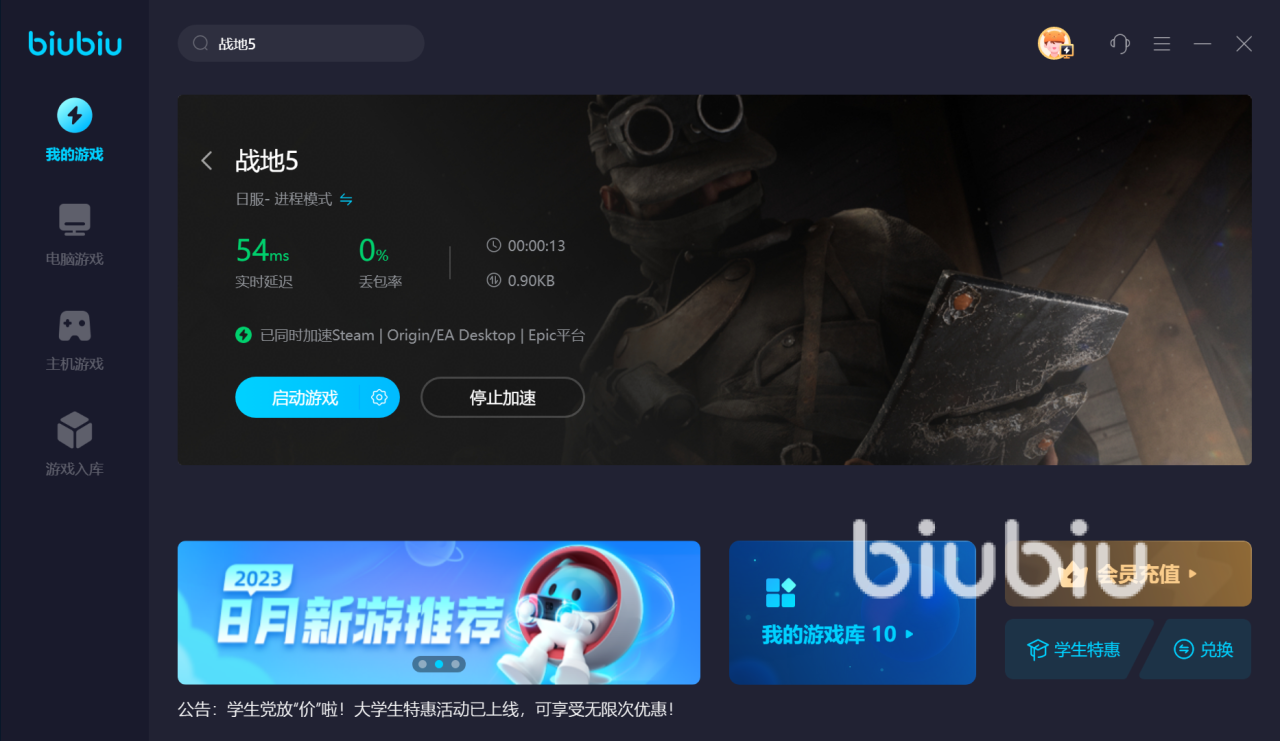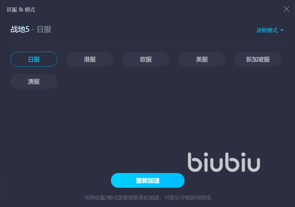 进入战地之前还需要由大家再去选择一个区服,这个区服就对应了游戏制作方放置的服务器,要是延迟想低一些的话就选择一个离当地比较近的,然后再去看一下和自动匹配的节点是不是对应起来的,因为进行战地5加速的时候就会让你先选择区服是什么,然后才能进行下一步的匹配,这一项功能也是等同于biubiu独有的一项技术,也彻底告别了服务器通用加速的模式,要是对这种技术好奇的话,也能趁着现在biubiu新用户注册领取三天免费加速体验的活动来体验。