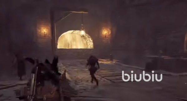 我们在铁区如果看到一个黄色的门,从这个门穿过去再摸一下存档石,然后从旁边接下去就是下水道的两条道路。这里我们走右边的道路,走到有一个开着的门前,从门进去后直接跳下去会发现一个半圆形的桥洞。这时向后转向前走一段路再向右跳上台阶会看到一个破了的墙壁,从这里穿进去向左转可以看到一个很矮的桥洞。