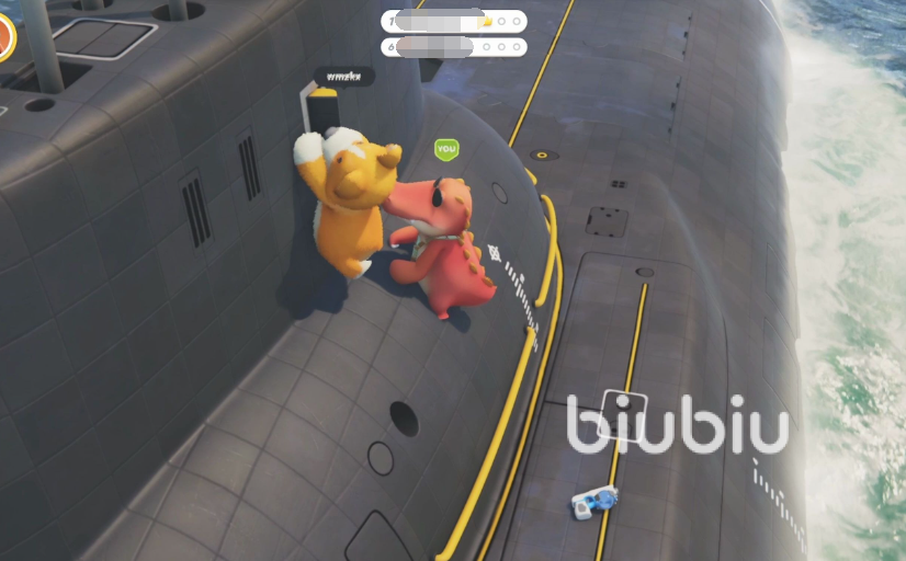 进入游戏后,玩家们会出生在一起,并且地上还会有随机刷新的武器,玩家们可以使用这些武器攻击对手,如果没有拿到也可以使用拳头进行战斗。如果对自己的战斗水平不是很自信,也可以选择苟住。远离这混乱的战局,躲在一边或者使用攀爬能力爬上旁边的建筑物。比如武道场中的石墙,潜水艇的舰桥。等到他们拼杀的差不多了,我们在下来坐收渔翁之利。总之,在没有武器的情况下,能躲就躲,避免先消耗自己的战斗能力。