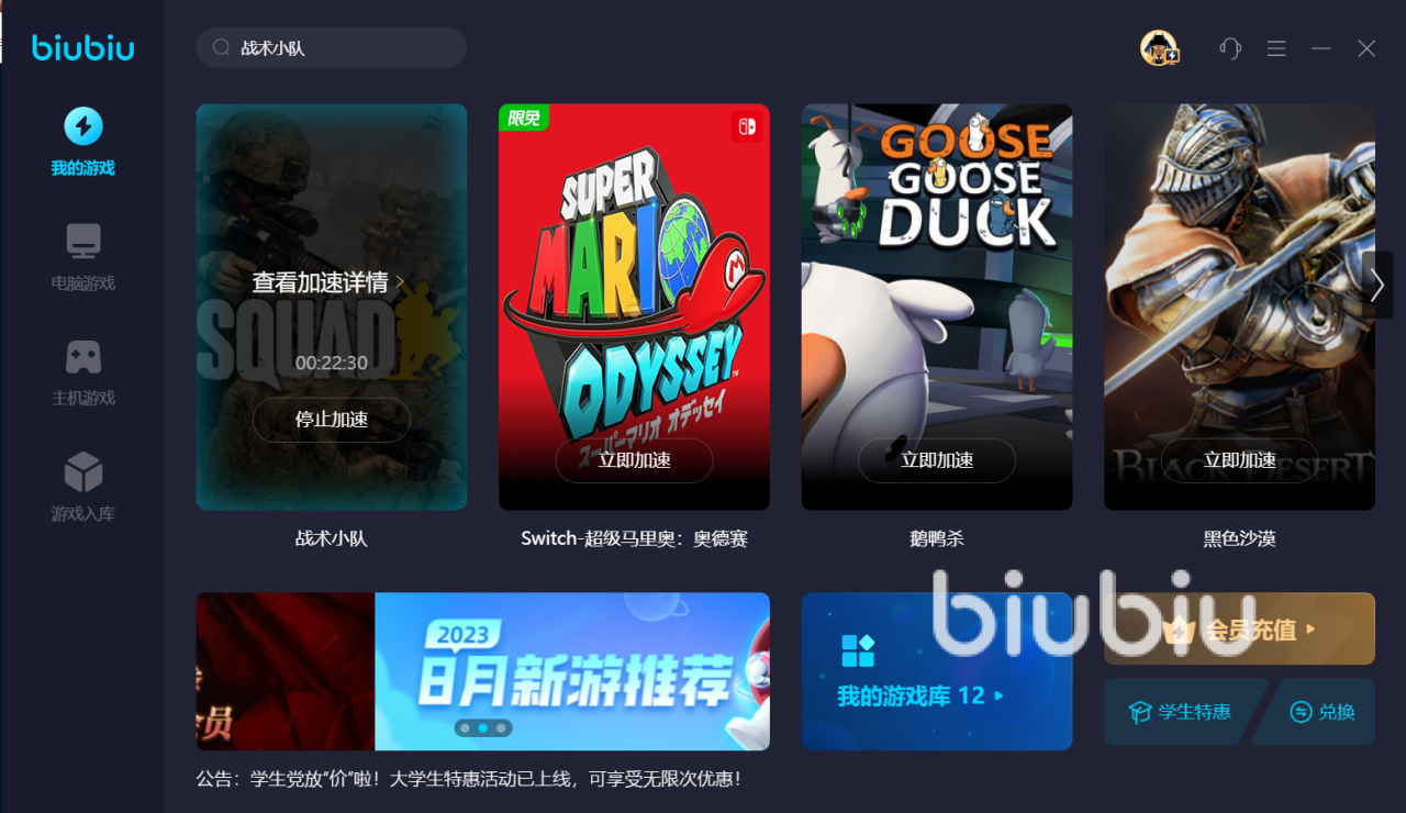 第二种:尝试biubiu加速器:由于战术小队的服务器和我们相距较远,所以进不去服务器、卡顿、闪退现象层出不穷。我们想要解决这个问题的话,就可以下载一个biubiu加速器。这款加速器的稳定性能非常优秀,帮助我们在游戏中可以正常发挥,降低由于网络波动所出现的问题。