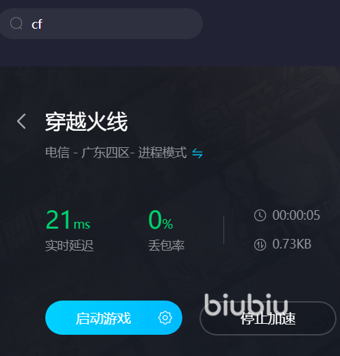 作为承载了许多人回忆的游戏。它有丰富的武器库和非常灵活的玩法,至今为止还有许多新人玩家不断加入cf这款游戏。但是现在在游戏过程中,为了能够维持更高的游戏画面以及流畅的动作指令的发送,可以使用BiuBiu加速器来保持游戏中的网络稳定性。
