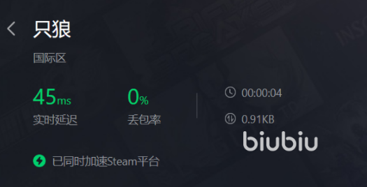 只狼的话还好是一个人游戏,对于卡顿、闪退的情况会好一些,网络足够好就没有大问题。使用biubiu加速器优化网络环境,只狼游戏的话只要保证操作过程中的流畅,让帧率能够尽可能低一些,这一点都可以满足。即开即连的模式下,方便很多,游戏能够搜索找到,那么加速就不成问题,连接好的专线网络会时刻保障网速。在游戏进行到最后时刻,或是玩久后也要适当放松,加速器也要点击关闭,为了玩家们有一个更好的体验感。