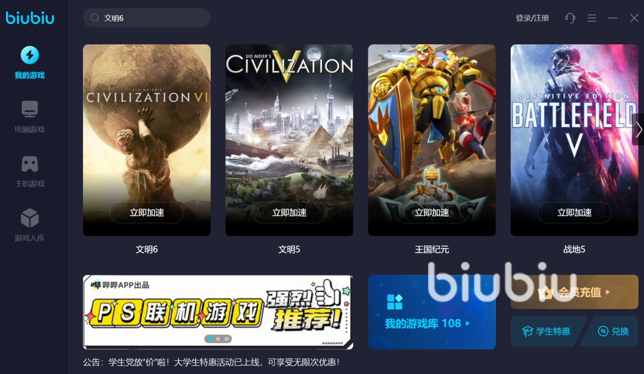 新用户赠送三天免费加速,所以不用纠结价格的问题,应该没有平台是先试用后续费的吧,真的是几乎没有。这也是给大家准备了一个了解biubiu加速器的机会,这三天玩家们肯定不会就玩一款游戏呀,这里还有资源丰富的游戏库,直接搜就能找到你喜欢的类型,都是可以尝试的。