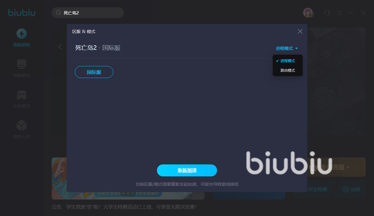 2023年08月07日 19:25 来源:熔炼众妙蛙种子死亡岛2是一款很火的冒险动作生存游戏,大家能在这款游戏中一边体验跌宕起伏的游戏剧情,一边和满城的怪物酣畅激战,非常刺激,然而有很多玩家在玩的时候会出现掉帧的情况,很影响体验感,死亡岛2掉帧怎么解决呢?其实要想解决掉帧方法也非常简单,就是选择一款合适的加速器,因为有很多掉帧的情况往往都和大家的网速有关,下面就给大家推荐biubiu加速器,帮助大家解决死亡岛2掉帧的问题。