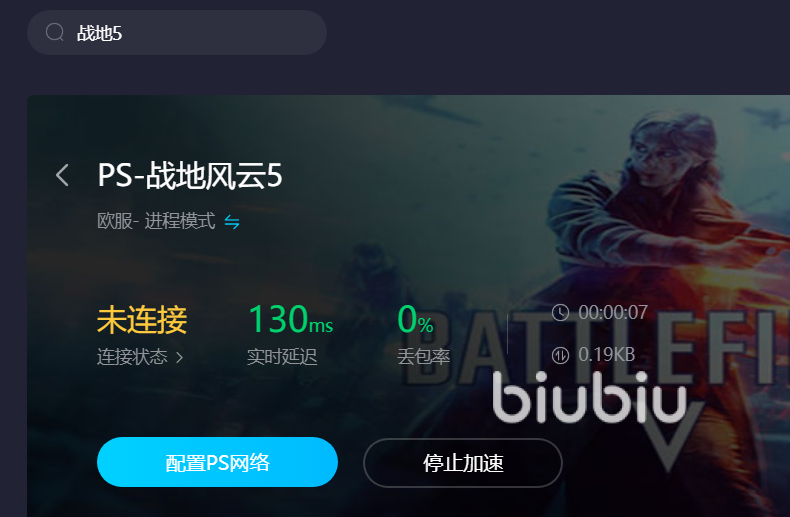 2023年08月07日 20:13 来源:魔法次伊布《战地5》是一款国外工作室研制的游戏。战地风云5具有特别真实的3D效果,但也给网络带来负担,那么可以用什么加速战地5这款游戏呢?大家都知道战力,这款游戏使用了寒霜引擎,这都是为了提高游戏过程中的画质细节效果,但是这带来的影响就是玩家需要更好的网络支持,但是想要能够开发家庭网络的极限状态,就必须使用一些游戏加速器,例如biubiu加速器就可以提高家庭网络的网络稳定状态。
