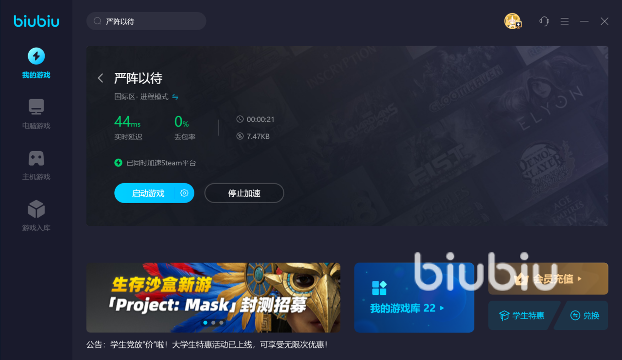 以上就是严阵以待进不去好友房间怎么办的全部内容,进不去好友房间或是卡顿等问题都能通过biubiu加速器来进行改善,而且你使用过程中要是产生问题的话也有相应的客服专区来让你进行反馈。