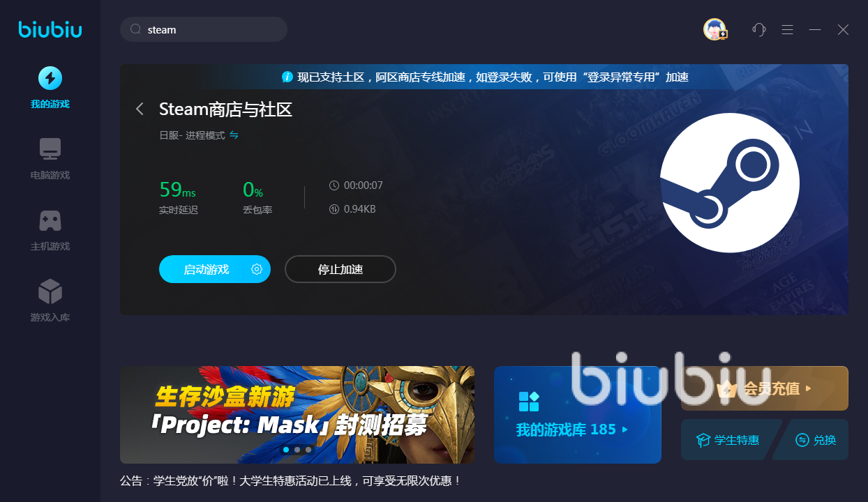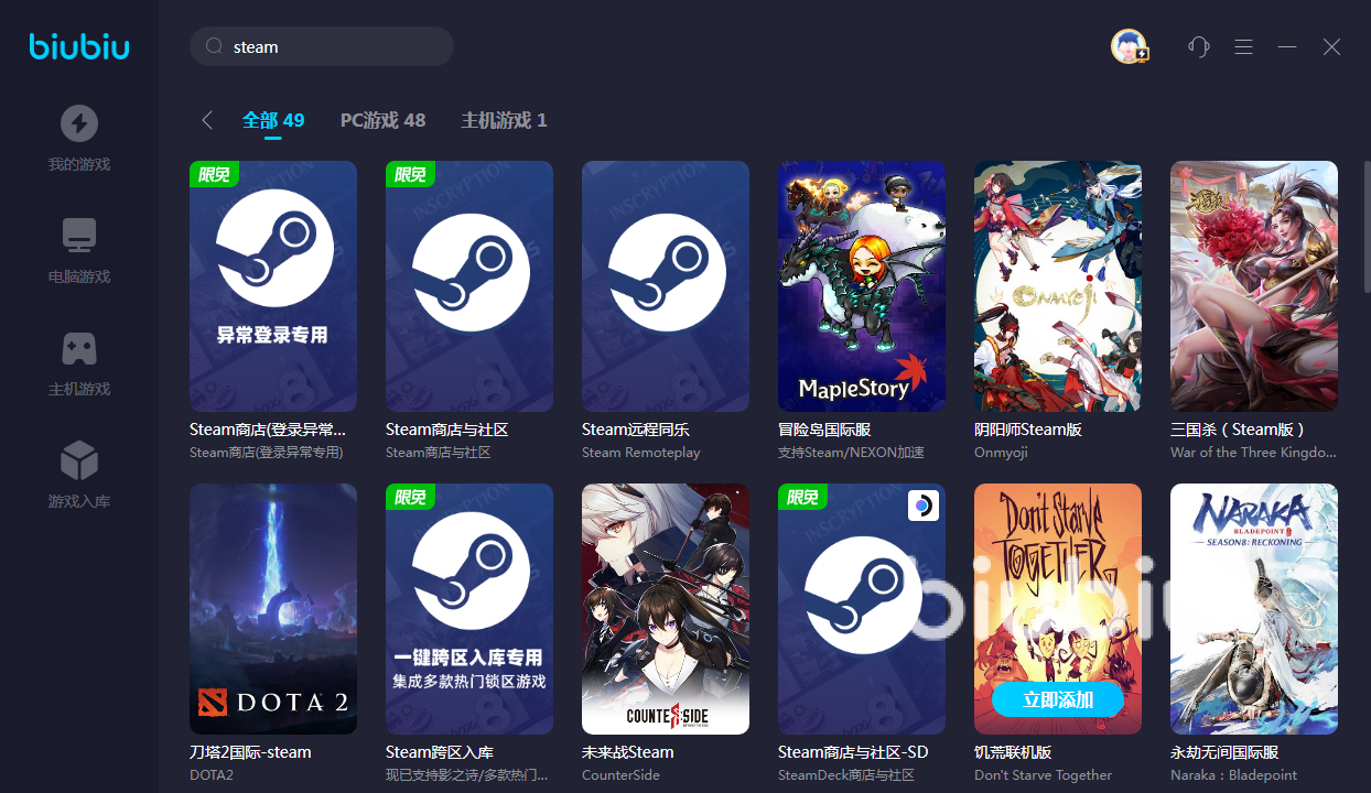 相信大家在该平台下载游戏的时候,都遇到过速度慢或者是直接失败问题,甚至直接在商店页面就出现登录失败,这些都是很常见情况,为了能够使这一环节更加流畅,小编推荐大家使用biubiu加速器来优化。这是一款专门为大型端游准备的辅助工具,除了加速游戏本身更加流畅之外,还可以直接用来加速平台。输入平台名称,从中可以看到有商店与社区,以及登录异常专用这样的选项,根据自身情况合理选择。