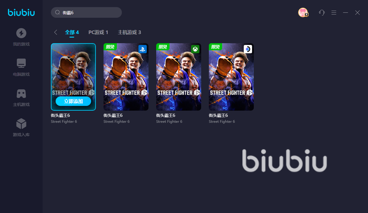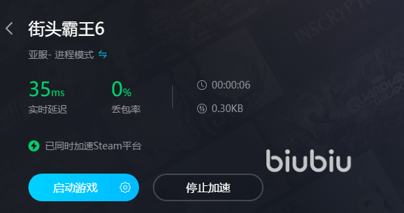 趁着现在有空的话各位格斗玩家可以直接点击上面链接下载去平台里搜索街霸6,然后添加就可以去到对应的加速服务区给游戏加速启动了。整个过程很简单,而且biubiu占用的内存也少,作为加速软件来说,是一个很适合选择的对象,不会增加游戏运行方面或者是电脑运行方面的负担。