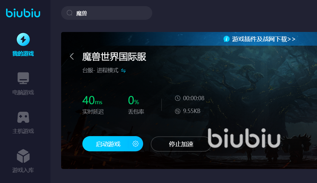 想要为开服的魔兽加速的话,可以先注册一下biubiu,这时候新人可免费加速三天。之后进入软件页面之后直接搜索魔兽两个字就会跳出魔兽世界的游戏,并且加速过程非常简单,你只需要先点击一下右上角的服务器选择然后点击台服之后,接着再点击一下一键加速就可以为游戏提速。接着一键打开游戏,就能在高速网络下登录台服魔兽。此外,魔兽的页面非常大,如果网速不够好的话,需要等待很长时间才能进入。此刻biubiu提供的高速网络,那个助你迅速加载每一个大型游戏场景。这样当你进入下一个游戏画面的时候,就可以节省大量的时间。