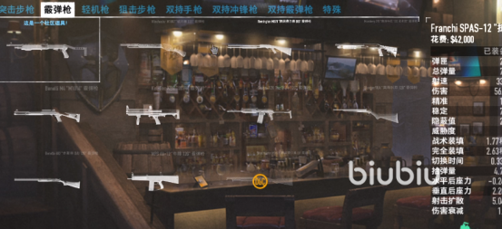 主武器一共有10把霰弹枪,在这些中,比较推荐使用一字马12G,需要581金币。它作为中远距离爆发力强的武器,可以对周围的敌人造成高额的伤害。缺点就是总弹量只有70,需要经常进行补充弹药。副武器中可以选择格林12G或者判官,前者伤害比较高,后者灵活度比较高,看个人的喜好选择即可。