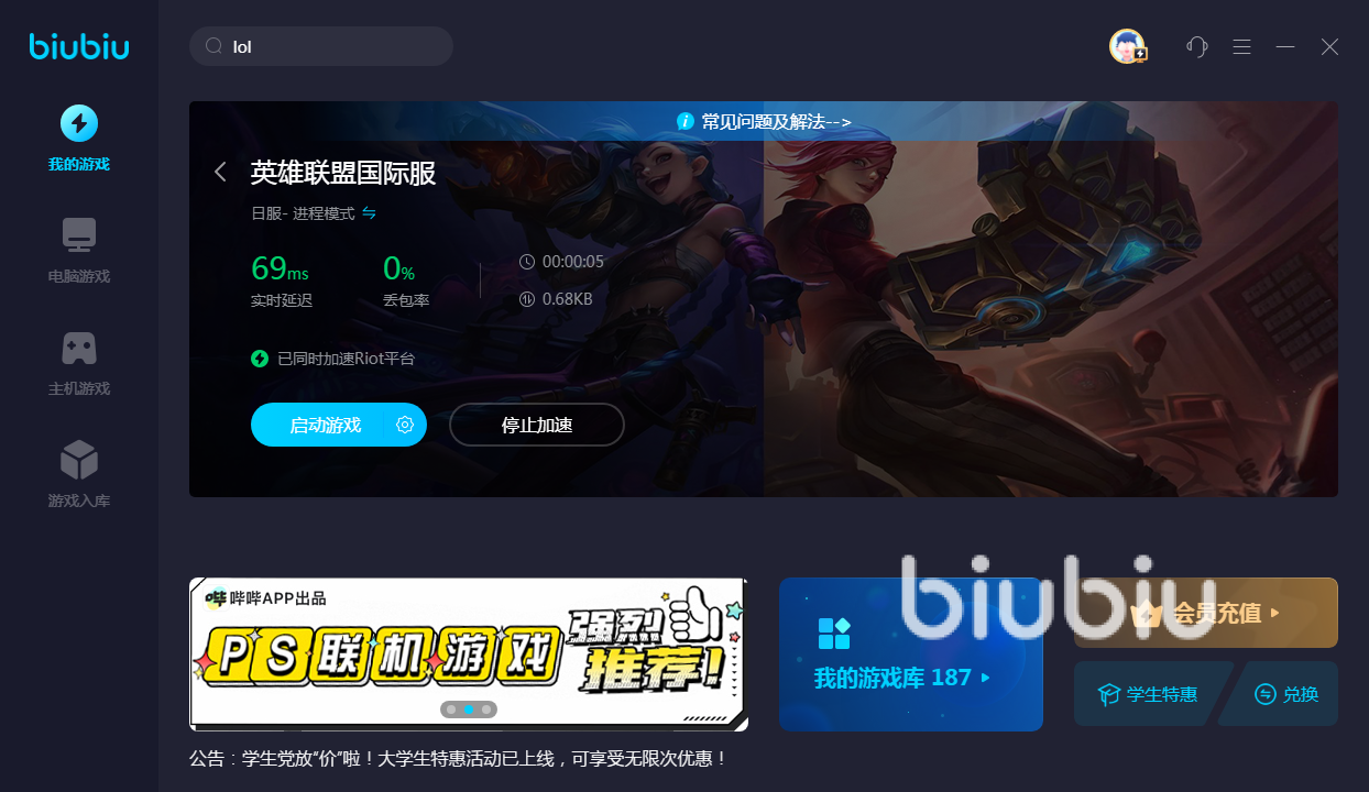 2023年08月09日 14:15 来源:虫洞以角金鱼lol是一款由拳头公司开发的公平竞技游戏,在全球范围内人气极高,不仅国服非常火爆,还有很多外服也是国内玩家常去体验的地方,今天小编来讲一下加速lol外服用什么加速器。因为很多缘故在国服想要去外服体验要经过一系列设定,而且登录经常会出现失败,即使登录进去网络延迟也难以得到保证,这时加速器作用就非常明显。
