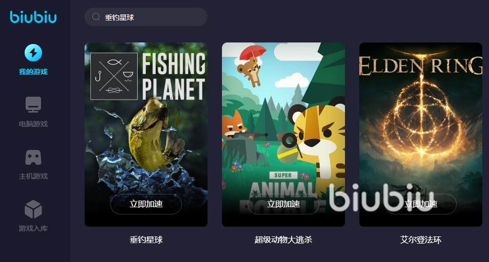 biubiu加速器支持多款热门游戏进行加速,可以满足玩家们的各种需求,在界面中搜索想要下载游戏名称,随开随用,特别方便,用加速器下载游戏会比普通的下载速度提升500%,让小伙伴们不用等待特别长的时间。