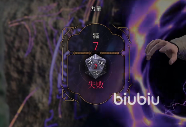 首先我们在初次见到盖尔的时候,会遇到一个紫色的上古符文法阵,当我们靠近石头触碰上面的印记的时候,会从法阵中突然升出一只手。并从里面有个男人的声音传出来让我们搭把手,这里我们需要通过骰子来选择是否能抓住那只手往外拉。比如难度等级随机出现是7,而我们的骰子最终停下来的数字小于7,则代表这个行动即将是失败的。