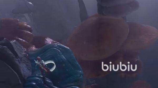 我们在高塔的入口阶梯处可以看到在左侧有一堆大型蘑菇,被炮台打中时先不要急着还手,先跳到蘑菇上去,然后快速向左边的拐角来躲开炮台的攻击。接着通过跳过一个个大型蘑菇来绕着高塔的外侧走,最终到达里侧的蘑菇基地获取材料。