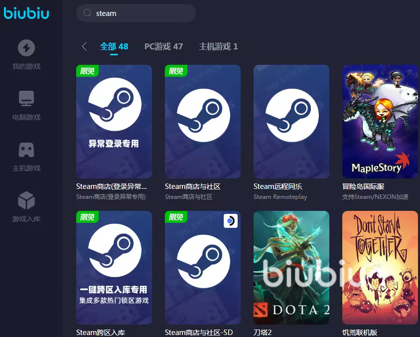 对了大家要记得把游戏下进固态硬盘里面,这样后续的读取速度要远远高于机械硬盘,并且对局的加载进度也会提升,不过在下游戏之前可以打开BIUBIU,它在全球都有专线支撑,能保证下载不断流的同时给steam平台进行加速,下载速度还会提升500%。