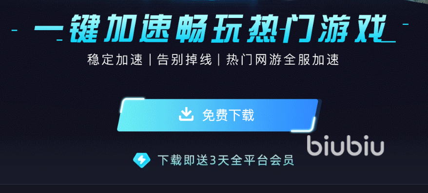 作为一款大逃杀游戏,肯定离不开拾取物资,如果延迟太高的了话,十分影响体验,而biubiu有着电竞级别专线的扶持能避免高延迟的问题,这样就能轻松捡东西了,而且下载注册之后,新人还能获取三天的免费全平台会员加速。