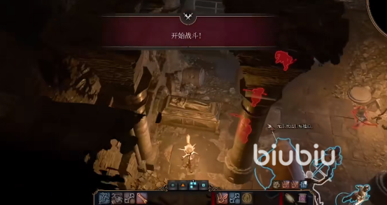 拿完桶后,我们来到中间位置,将这些桶摆在中间头目的附近,让吟游诗人站在他们旁边唱歌,吸引他们的注意力。然后点燃火酒桶,可以轻松解决第一个敌人。这里建议先存下档,如果吟游诗人被炸死了,可以读档将他复活。