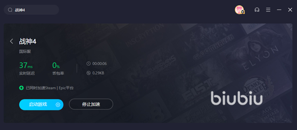Biubiu这款工具用来解决战神4闪退是再合适不过了,虽然本作的人气很高,但其实有不少工具都没有支持上。而biubiu不仅是支持了PC版战神4的网络修复以及闪退优化,更是给拥有SD的玩法带来了免费加速的福利。打开软件后我们可以在电脑游戏库中找到这款作品,不过直接搜索战神4游戏名称会更加方便、准确定位。