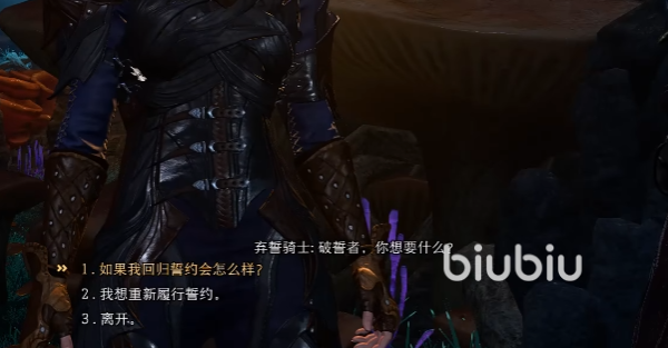 当晚上回到营地里面再次找到弃誓骑士的时候,可以选择重新履行誓约,这个时候他会告诉我们需要支付约定的价格才可以回归,这里可以花费2000块来恢复我们的身份。