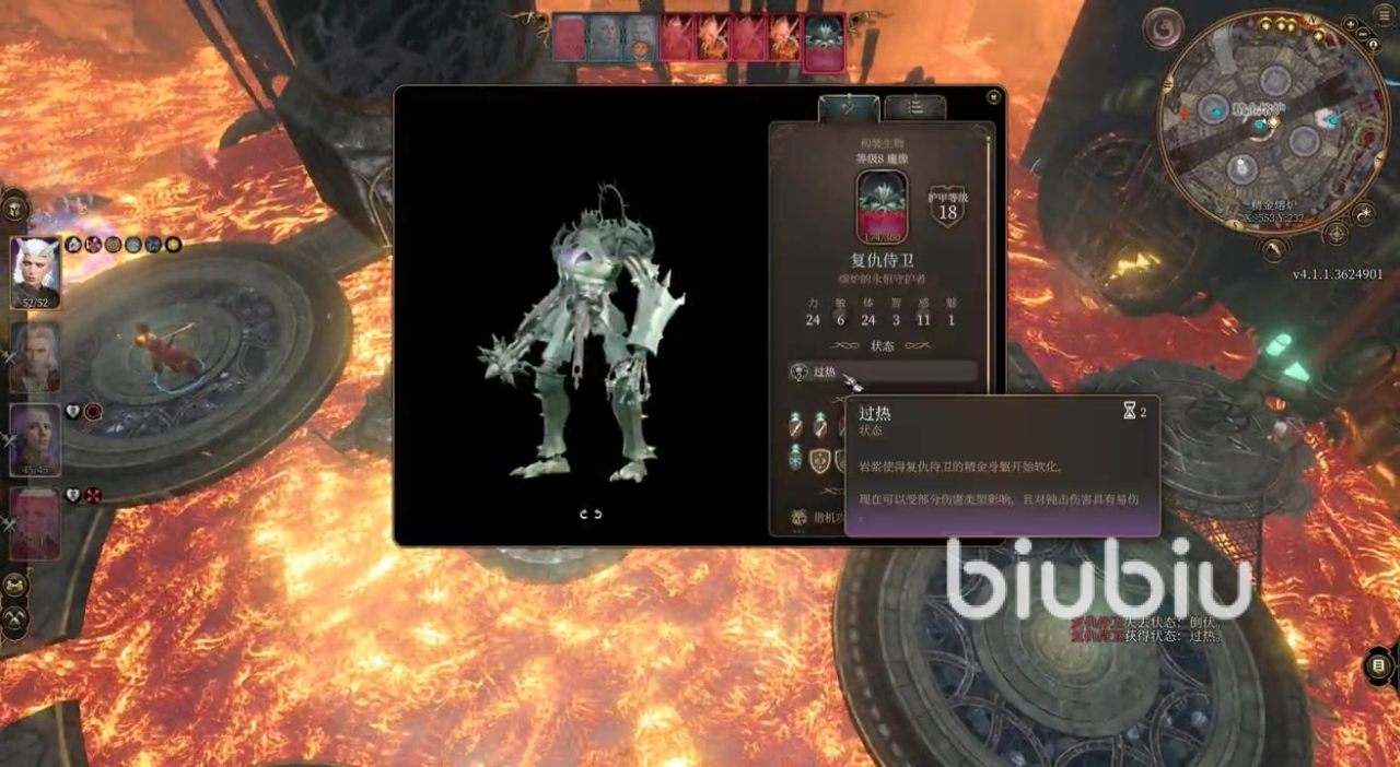 复仇侍卫是游戏中的一个机制boss,当他踩到岩浆过后会处于过热的状态,而在这个debuff的情况下,只要对他进行攻击,就可以造成一定的伤害。玩家在和队友组队时,其实并不需要队友有强大的输出,只需要给他挂上一个过热的状态就行啦。在战斗的过程中当大家出现操作不流畅时,下载biubiu加速器就可以一键改善网络环境,现在新人还有3天免费会员加速的福利。