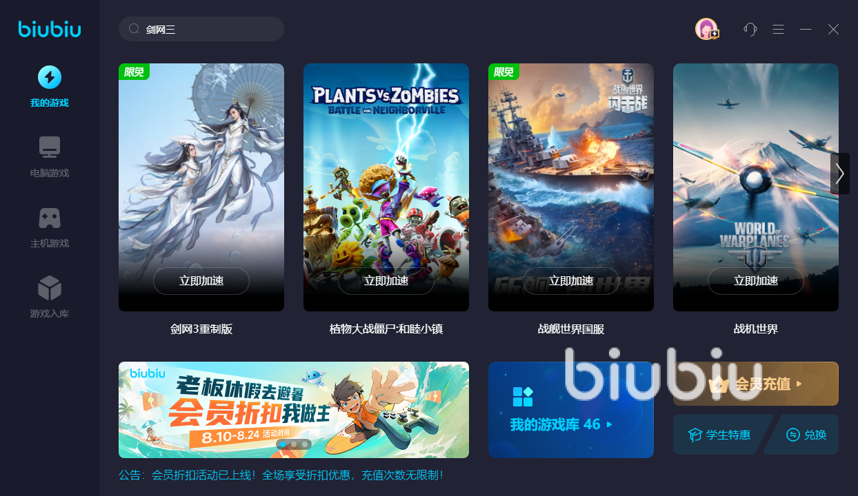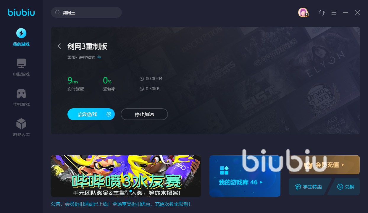 剑网三加速什么加速器好给大家推荐的就是biubiu加速器了,目前剑网三等国服的游戏,biubiu也是有免费加速活动的,不过是短期活动,想要体验一下加速效果的朋友们现在可以下载感受一下,优秀的加速效果一定能让大家拍手称快。