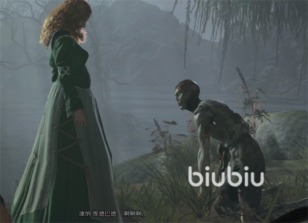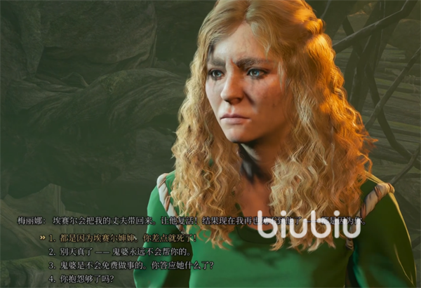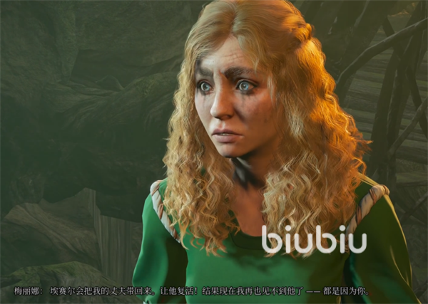 之后当我们到达腐烂泥潭后可以再次与梅丽娜进行对话,在对话中我们可以利用法杖来复活梅丽娜的丈夫。而复活的丈夫却是一个丧尸,玩家可以选择将法杖交给梅丽娜,让她寻找让丈夫复原的方法。