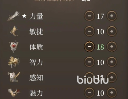 1级的时候一定要选择战争祭司,这样就可以在发动攻击的时候得到附赠动作或者额外一次攻击,这样在装备盾牌的基础上,也能保证伤害足够。后续的打造路线更偏向于抗揍而不是输出,所以敏捷可以适当的放弃,选择加点体质以及力量。