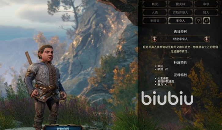 游荡者这个职业的定位,相当于传统游戏中的刺客、盗贼,因此它能在潜行的状态下去袭击敌人或者进行偷窃开锁,以此来打出非常高的伤害或者附加某种状态。游荡者的种族选择只有四个,人族、半身人、卓尔精灵和精灵族,从这个职业的自身特性出发,半身人无疑是最适合的,因为半身人的身材矮小,潜行的时候更加不容易被发现。