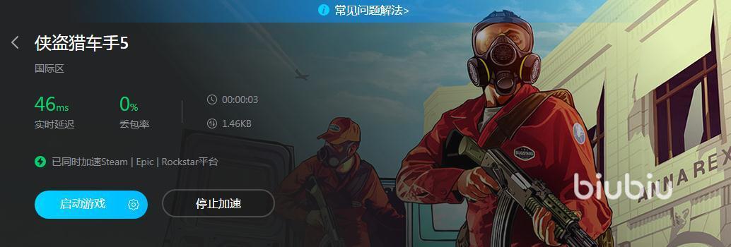 作为全新的gta系列作品,相对比前代,它优化的地方也是蛮多的,尤其是玩法机制和射击动作,此外还有着特技驾驶的融入,为大家增添了游戏的乐趣和挑战性,可要是网络环境不给力,想要凭借操作来秀出精彩的动作就有点苛刻了,毕竟延迟带来的后果最直接影响就是指令发出会存在延迟的情况,此外还有掉线这类现象,所以各位这个时候就应该去使用biubiu这种电竞级的加速软件来帮助自己了。