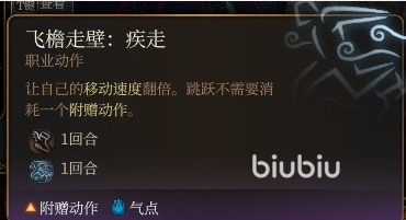 武僧初始没有护甲熟练,武器熟练也只给了简易的武器和短剑,后续能力会围绕这两点展开,所以也不算太大的缺点。这个角色在一级拿到的气这个技能是一种能用于施展各式武僧能力的资源系统。一级可以用气打疾风连击,这是一个附赠动作的二连拳击,由于解锁早效率高,在游戏前期就很在竞争力。二级能够使用坚强防御和飞檐走壁,前者使角色受到的攻击均为劣势,敏捷豁免均为优势,足以应对大多数敌人的伤害手段。后者飞檐走壁给到角色附赠疾走和撤离,并解除跳跃的资源限制,机动性甚至比游荡都还要再强一点。