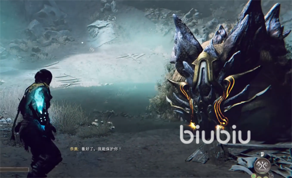 接着莫拉斯会与我们进行对话,逼迫主角离开营地探索荒原找到一名窃贼,主角为了同胞接下了这个任务。离开营地后顺着道路前进会听到低语声,我们需要找到声音的来源,顺着道路前进会发现一个散发光芒的沙坑,跳下就会触发剧情动画。动画中低语来源于一个拳铠,主角获得了拳铠。剧情动画结束后就会遇到第一场战斗击败妖灵,妖灵属于基础怪物,很简单就可以击杀。