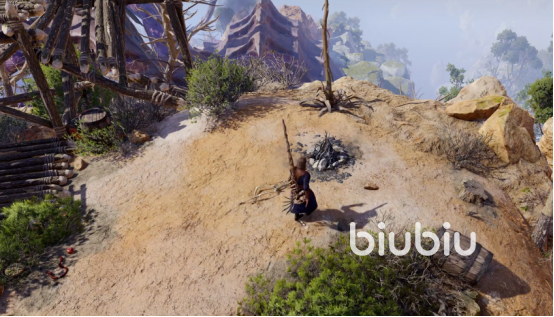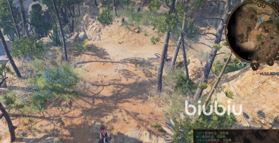 然后我们在篝火旁进行勘察,会发现两块石头那边有东西。如果察觉失败也没事,可以让队伍中的其他角色来进行察觉。一旦成功,就会闪烁着白光,之后会进入一段cg,表示裂缝后面有一个背包,上面爬满了蜘蛛。