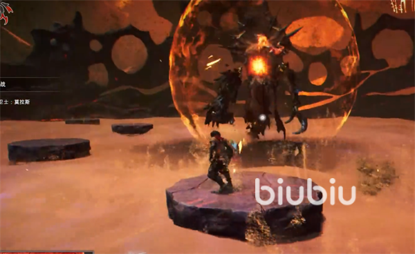 在沙地上会出现8个平台,站在平台上就可以避免相关伤害,但同时BOSS也会释放火球攻击平台,被火球击中的平台会直接破碎,所以玩家需要在多个平台间进行跳跃。当平台全部破碎后BOSS的无敌状态就会解除,这时就可以继续攻击。游戏中BOSS总共会触发3次无敌状态,除了第一次外,从第二次开始,BOSS还会持续的释放旋转激光来攻击玩家,玩家需要在跳跃平台的同时躲避这些激光。当只剩最后一个部位时还会再次召唤飞行妖灵,这时可以不用管,直接全力攻击击败BOSS即可。