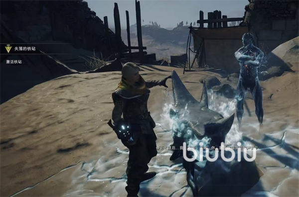 首先沿着道路前进可以看到一个常亮点,与之互动抬升铁砧,之后激活铁砧。在动画以及对话结束后,玩家就可以解锁新能力破空冲刺。破空冲刺属于空战技能,可以帮助我们更好的击败空中的敌人。