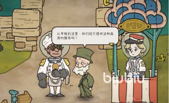 在向导托马斯的引导下,我们会前往站台搭乘魔力威尔。在搭乘的过程中,有一个穿着礼服的老人和工作人员进行争执,由于对鱼类过敏,导致他现在身体非常不舒服,需要去找回自己的行李,里面有治疗的药品。然后就到了我们的自由探索时间,可以将周围的NPC和道具都点击一下,最后再来找售票员玛丽。她让我们到后面的架子上找到乘客须知,然后回来答问题,都答对才能进入乘船区。在这里我们会遇到刚刚见到的老人,他自称麦琪·高夫曼,表示自己需要喝点什么来缓解刚刚的事情。
