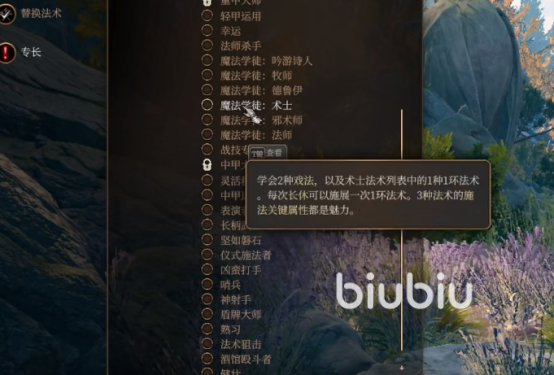 在1级时,我们可以选择两个戏法,它可以随意释放,并且不占用法术位,所以一定要选择伤害高,cd长的技能,推荐选择魔能爆和初级幻影。前者可以发射一道爆裂能量光束,后者可以召唤一个幻影,强迫附近生物进行调查。法术的话,选择脆弱诅咒,能对目标造成1d6的黯蚀伤害,最重要的是可以让对方某一个属性检定处于劣势。其次可以选睡眠术,让敌人陷入沉睡,当受到伤害时会自动醒过来。