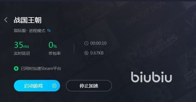 biubiu的程序占用非常小,也不会对你的设备产生负担,另外你还可以随时切回来查看实时延迟非常方便。不光是本作对于全球大多数流行的作品它都能为你提供加速,只要你爱玩游戏那么它就能成为你的小助手。