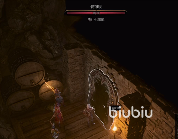 当玩家在地窖中到达坐标X:-654 Y:-349这一位置时,就可以看到装饰镜了。装饰镜所在的位置就是后续探索的入口,玩家只有说服或者成功威胁装饰镜才可以解锁后续道路。