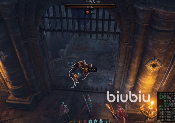 想要到达塞伦涅信徒哨站,玩家首先需要通过被亵渎的神殿最深处的木爬梯,通过木爬梯玩家即可进入塞伦涅信徒哨站。进入哨站后,我们会发现一座塞伦涅女神雕像,进入哨站的通道位于雕像的后方,雕像的正面则是被一山铁闸门所封闭着。当玩家到达闸门前,就会出现一只牛头人,牛头人会攻击铁闸门,而雕像则会持续攻击牛头人。这里玩家无需操作,等待牛头人被雕像击杀即可,牛头人被雕像击杀玩家是无法获得经验值的。若是想要获取经验值,可以扳动铁闸门前的扳手,即可打开门放牛头人进来。