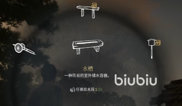 生产这个容器需要任意一段的原木段,而这个原木段需要我们去森林中砍伐树木获得。制造出水槽后在屋子的外墙边缘按下鼠标左键来进行放置。放置完毕后就可以等天气是雨天的时候,在雨天过去后水槽就会自动接满水。