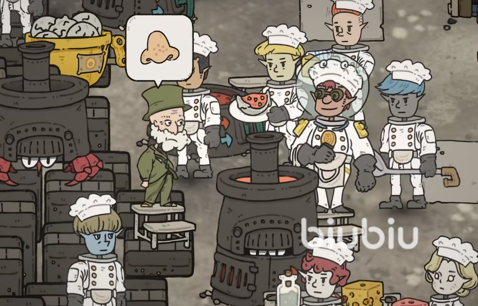 说完之后就可以切换成厨师的视角,来走下其他的剧情。大家交谈完之后玩家可以短暂的控制雷可小姐来寻找各种线索,在船舱里面转悠,会发现大家研究菜品失败了,需要一个新的原材料来进行尝试,但是要前往锅炉深处才可以寻找到。