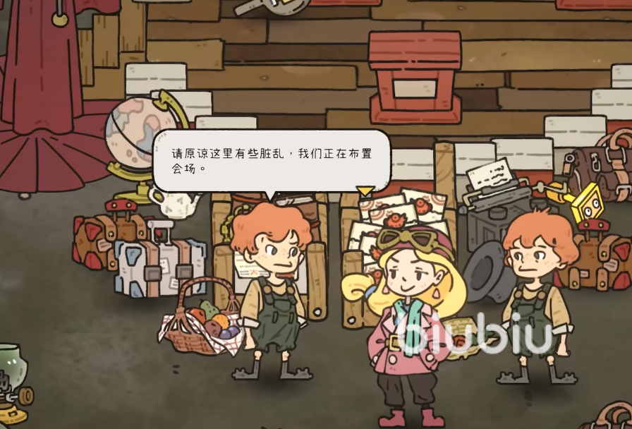继续往后看会发现原来是关于鉴赏会的内容,两个双胞胎正在布置会场。等到交谈完主角就可以自由活动来找一找这里有哪些可以互动的物品,遇到一些不太了解的物品,双胞胎还会在旁边解答,提到了会长跟主角父亲之间一些纠葛。