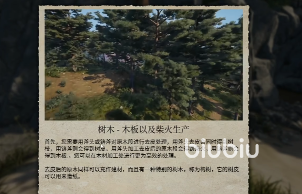 与树枝这种可以在地面上直接采集的资源不同,原木需要我们先用三根树枝和三个石头制作出一把石斧,然后将包裹里的斧子从物品格拖到快捷使用栏。再按下对应的按键操纵角色用斧子去砍树木,当把树枝砍倒后再进行砍伐便可以收集到原木段了。得到原木段之后再用斧头或者锛斧对它进行去皮处理,可以得到柴火、木板、树枝或者树皮等等。