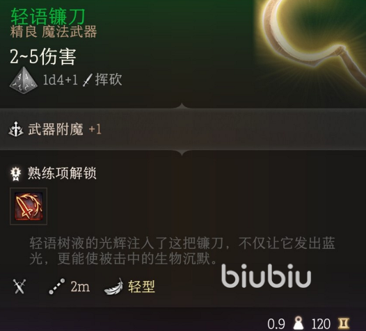 其实这东西获取起来不难,就是跑到幽暗地域去找轻语树就行了,算是比较常见的一种东西。它是一种合成武器的材料,玩家如果想做这个系列的武器那就用的着它,其余情况下和废品没什么区别。轻语系有三把绿色品质的兵器分别为匕首,镰刀以及巨剑。主要特性是沉默对方以及增加熟练度,在伤害方面的表现一般般。