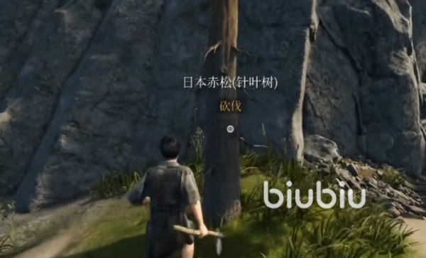 制作好后先将工具从物品栏用鼠标托到一号快捷栏位,之后按下对应的快捷键1,便可以让角色手持斧头。然后需要找到带有砍伐标志的树木,这里注意并不是所有树枝都可以砍伐哦。如果我们在面对树木没有出现提示时,是无法对它进行砍伐的。